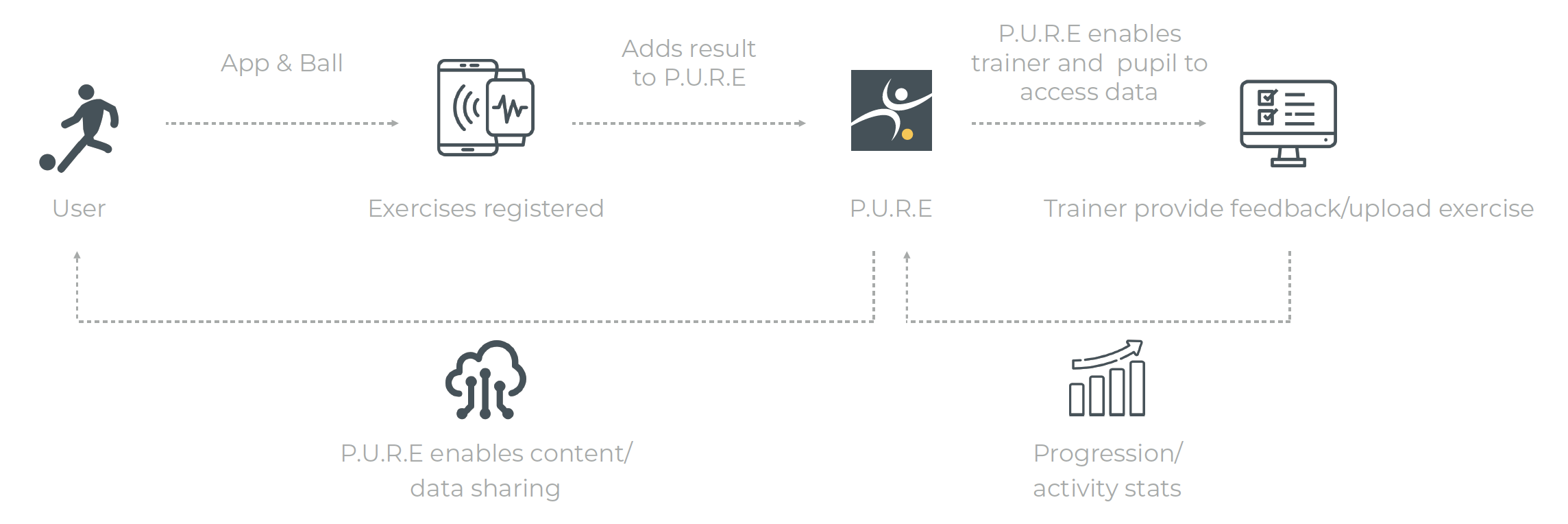 De app fungeert als verlengde van de P.U.R.E. Smart Ball. Met behulp van deze bal kunnen er trainingen worden gegeven en heeft een coach inzicht op individueel niveau.