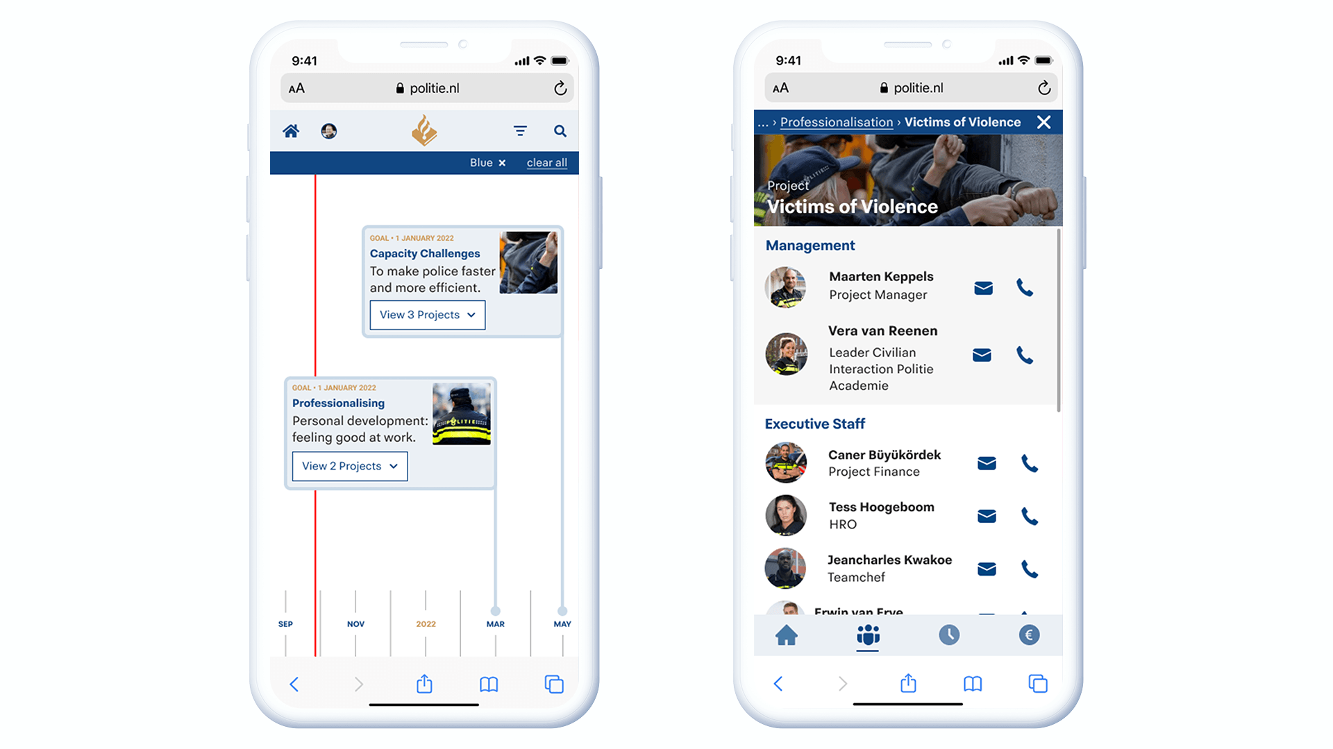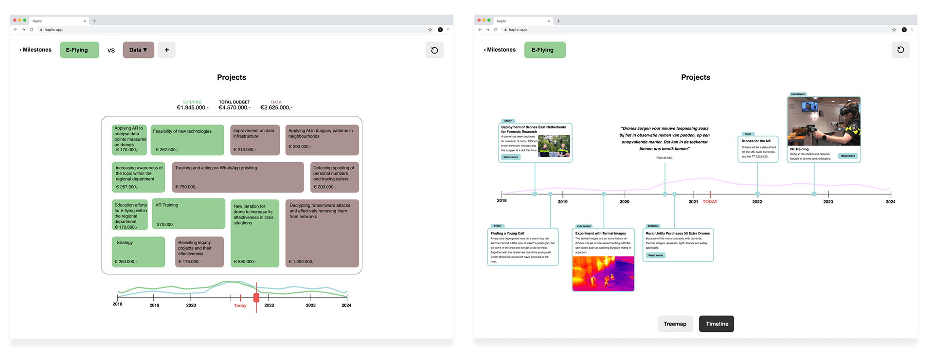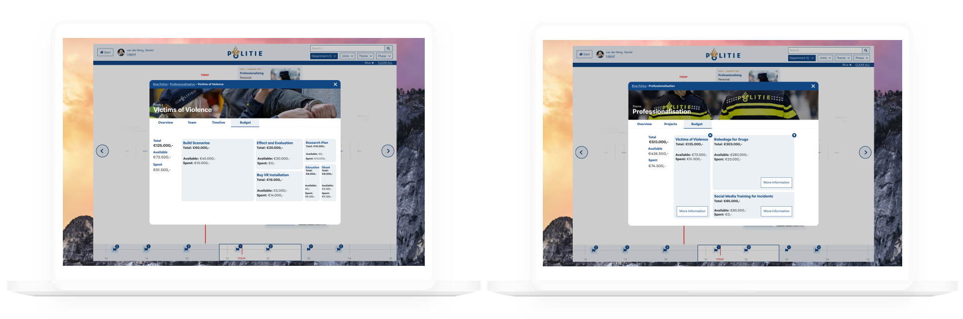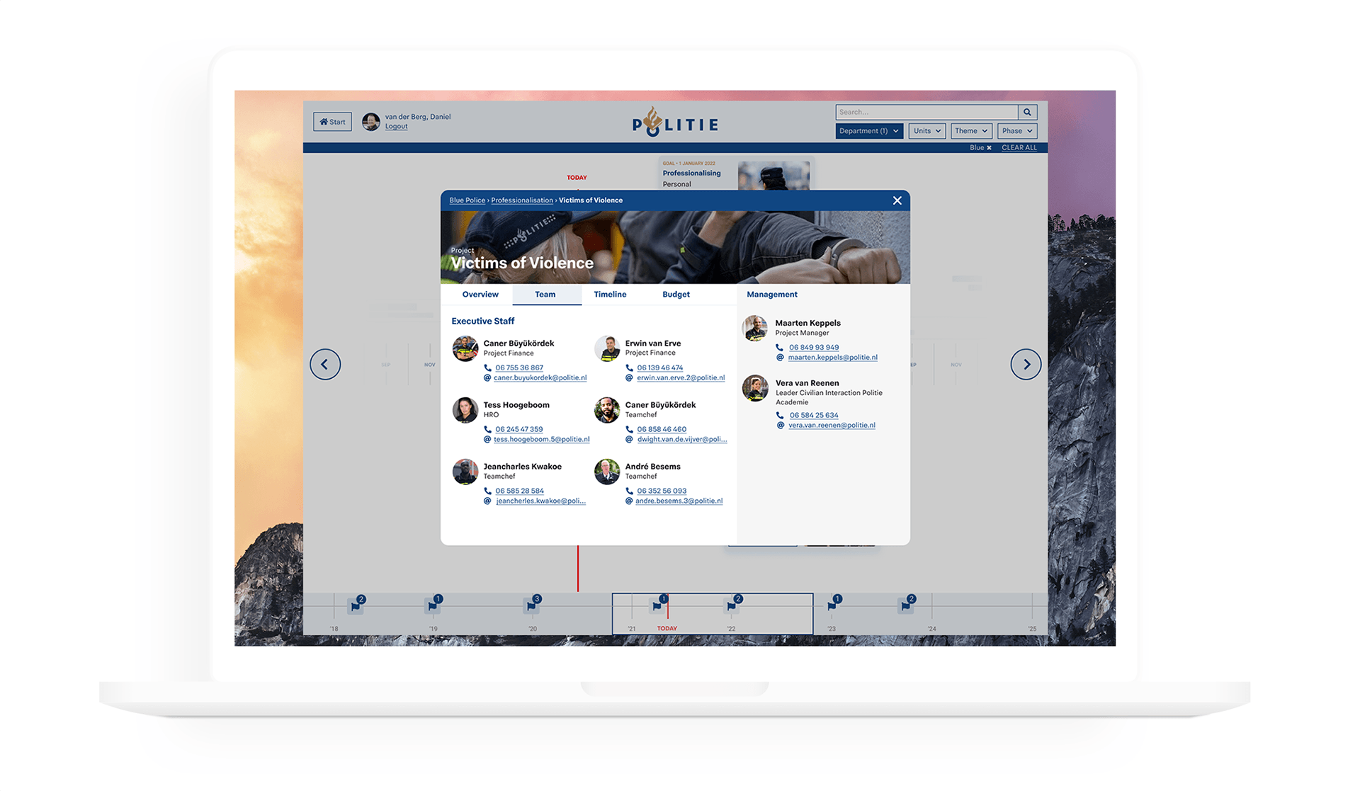 Het resultaat is een interactief platform die de realtime status van innovatie binnen de politie inzichtelijk maakt doormiddel van verhaalvertelling en het uitlichten van projectprocessen.